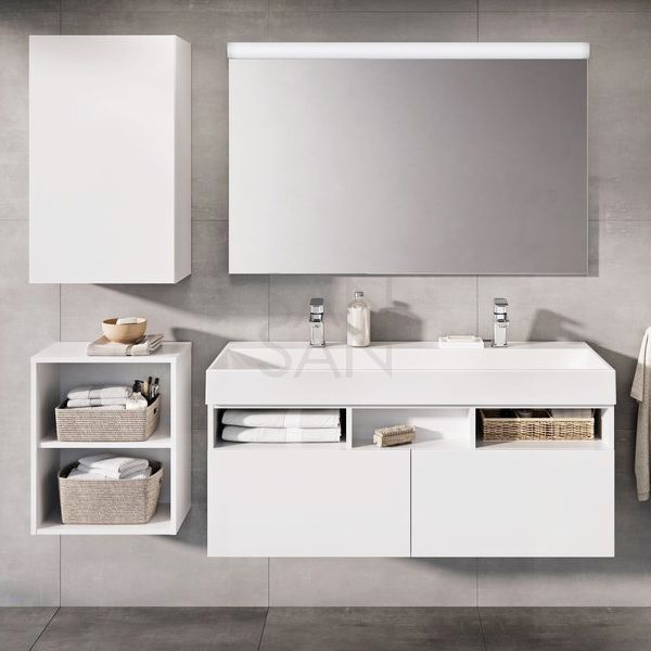 Ravak Natural 1200 on valkoinen allaskaappi, jossa on minimalistinen muotoilu ja joka on suunniteltu asennettavaksi yhdessä Ravak Natural Duo -kaksoisvalaisimen kanssa. Se on seinään kiinnitettävä allaskaappi, jossa on kolme hyllyä ja avattava laatikko, joka tarjoaa runsaasti säilytystilaa kylpyhuonetarvikkeille.