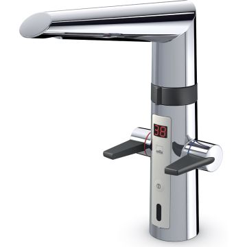 Oras Optima Hybrid 2727F on kosketusvapaa keittiösekoitin, jossa on Easy Grip -kahvat ja elektroninen pesukoneventtiili. Pesukoneventtiili aukeaa erityistä valopainiketta painamalla ja sulkeutuu automaattisesti 3 tai 12 tunnin kuluttua. Sekoittimen erottaa erityisestä lämpötila-anturista, jossa on lämpövaroitus. Kosketusvapaata käyttöä varten kädet on asetettava anturin vaikutusalueelle ja veden lämpötilaa voidaan säätää kääntämällä sekoittimen ja juoksuputken välistä ritilää. Kosketukseton toiminto voidaan myös helposti kytkeä päälle/pois. Sekoitin on varustettu korkealle kääntyvälläjuoksuputkella, jonka pyörimiskulma on tehtaalla asetettu 120° (rajoitettavissa 60° tai 80°). Verkkosyöttö 230/5V tasasuuntaajan kautta. Sekoitin on varustettu jätesuodattimilla.