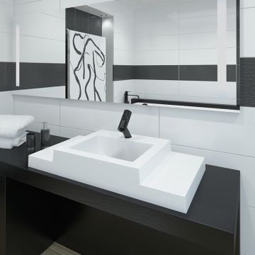 Gemma 3 on tilava Vispool-kivikylpyamme, jonka kaareva muotoilu on suunniteltu asennettavaksi seinän viereen. Kylpyammeessa on käytännöllinen jatkettu pinta reunalla, johon voit halutessasi asentaa sekoittimen tai käyttää pintaa kylpyhuonetarvikkeiden ja kynttilöiden tukemiseen.