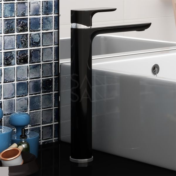 Gustavsberg Estetic on korkea sekoitushana mustana, jossa on yksi kahva, jonka avulla voit säätää mukavasti sekä veden virtausta että lämpötilaa.eco-stop mahdollistaa veden virtausnopeuden yksilöllisen säätämisen. Joustavat vesiliitäntäletkut helpottavat asennusta. Estetic-sekoitinhana on saatavana kromin, valkoisen ja mustan värisenä.