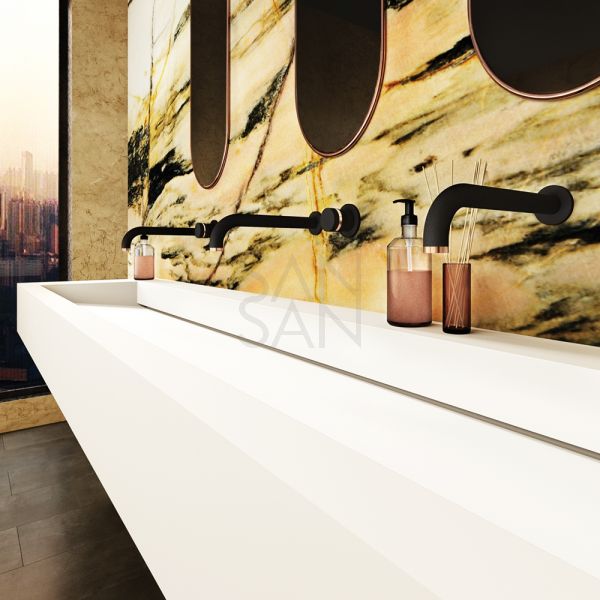 PAA FLOW 500 on seinäasennettavaksi suunniteltu silkkipintainen kivipesuallas .Silkkipintainen mattapintainen pinta miellyttää silmää ja kestää samalla hyvin likaa ja kulutusta. Neliön muotoinen rakenne ja tyylikäs silkkikivipinta tekevät siitä täydellisen lisän modernia tunnelmaa edustaviin kylpyhuoneisiin.