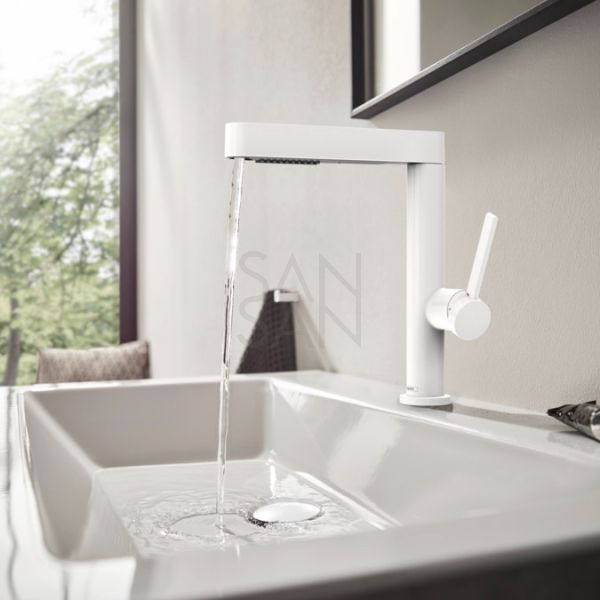 Hansgrohe Finoris 230 mattavalkoinen on sekoitushana, jossa on suora juoksuputki ja yksi kahva, jolla voit säätää kätevästi sekä veden virtausta että lämpötilaa. Sekoittajassa on kätevä ulosvedettävä käsisuihku ja kaksi veden virtaustilaa. Laminaarinen vesisuihku, jotta vesi ei roisku peilille tai seinälle, ja PowderRain-käsisuihku.
