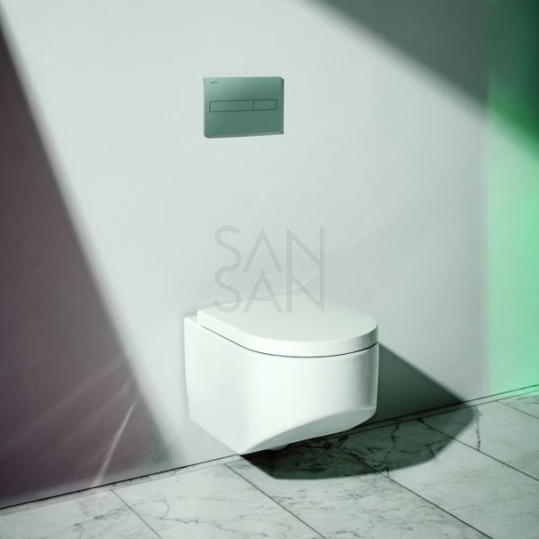 Laufen Sonar 820341 on selkeän arkkitehtonisen muotoinen seinään asennettava pesuallas, jossa on valkoinen roiskeläppä. Wc-altaassa on uusi Rimless-tekniikka ilman sisäkehää, joka helpottaa puhdistusta ja estää bakteerien ja lian kertymisen.