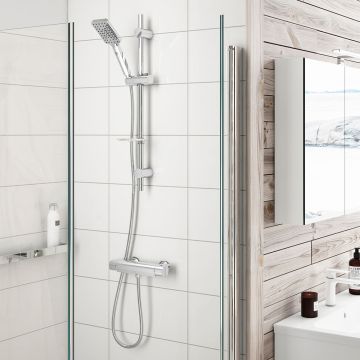 Classics 2 on kaareva muotoilusuihkukaappi, joka sopii mihin tahansa sisustukseen. Suihkukaapin ovissa on mustat kahvat ja seinäprofiilit, ja suihkukaapin lasi on kirkas.