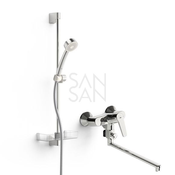 Oras Saga 3945Y -suihkusarja sisältää Oras Saga 3942Y -suihku- ja kylpyammeen sekoittajan ja Apollo 520 -suihkunostimen.