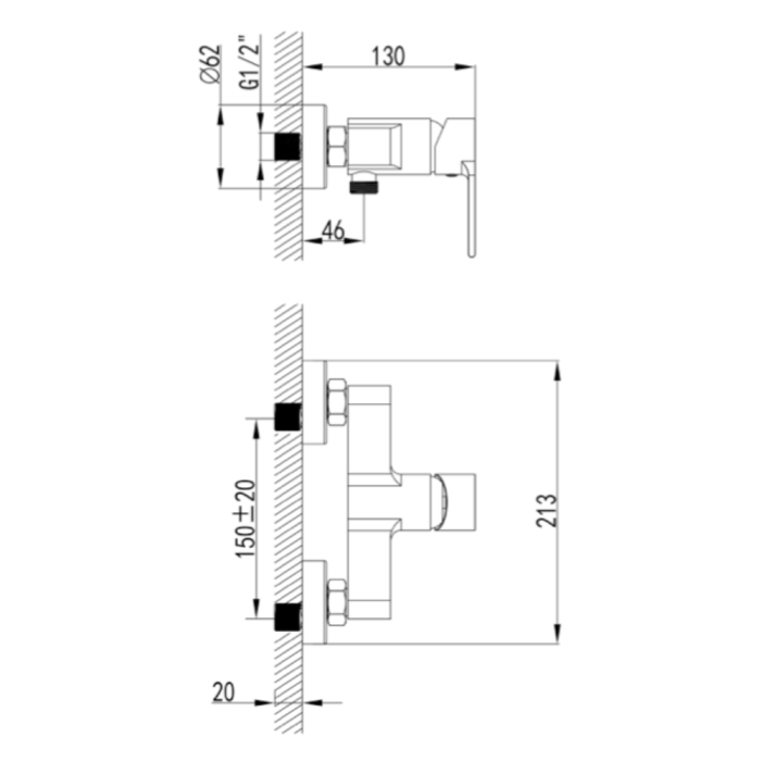 Termostaatti suihkuhana Blue Star Torino musta
